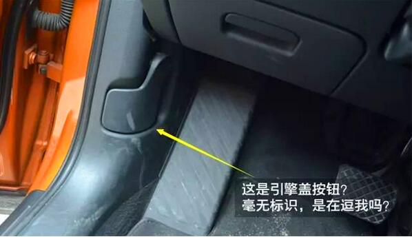 引擎蓋按鈕,看到這個就知道一定是不小心而誤開的,引擎蓋開啟,車內是不會有任何的提示的,也就意味著你的電池已經不安全了。